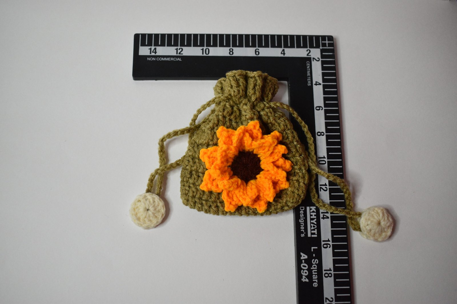 Handmade crochet sunflower pouch made with soft yarn. Cute, compact, and perfect for storing coins, earphones, or small essentials. Adds a bright and aesthetic touch.